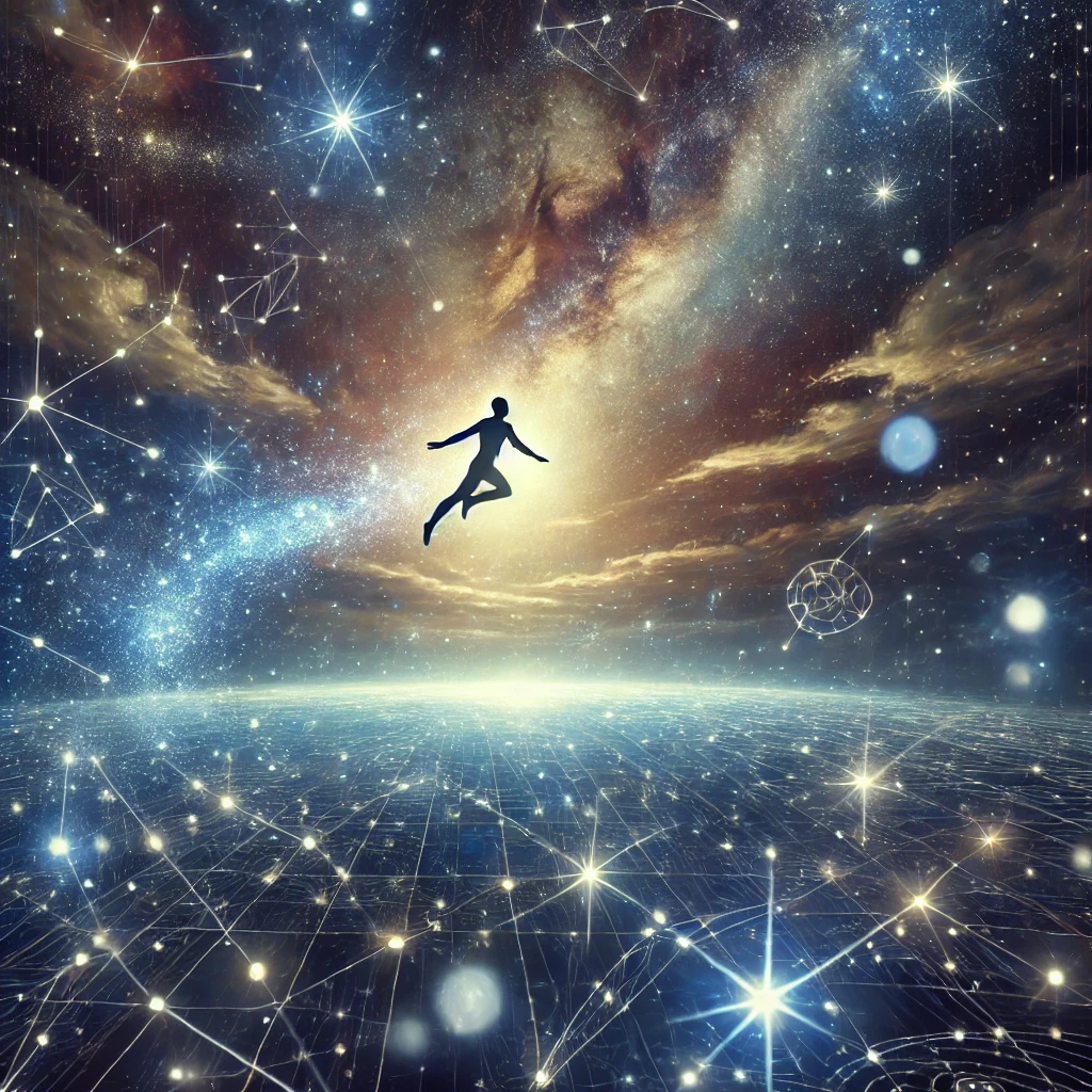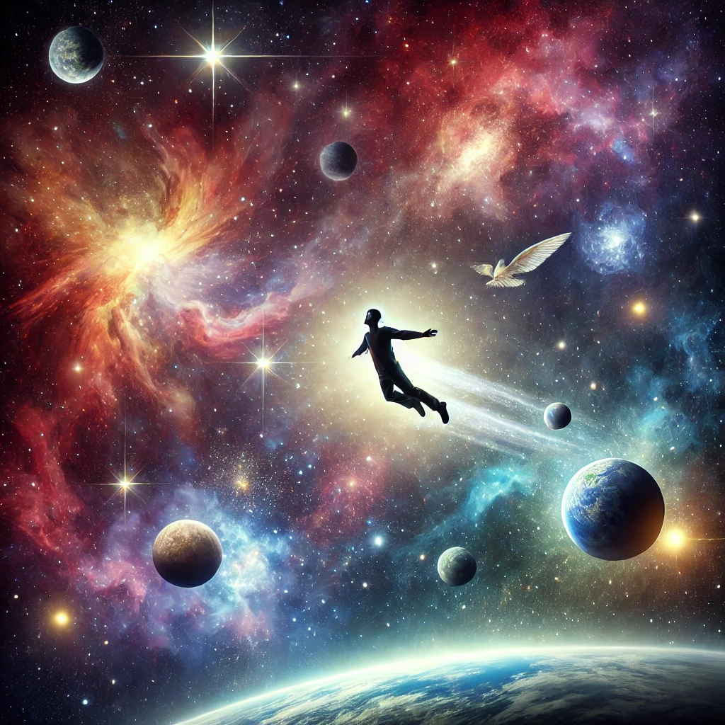 우주를 나는 꿈: 무한한 가능성과 창조성을 상징합니다.