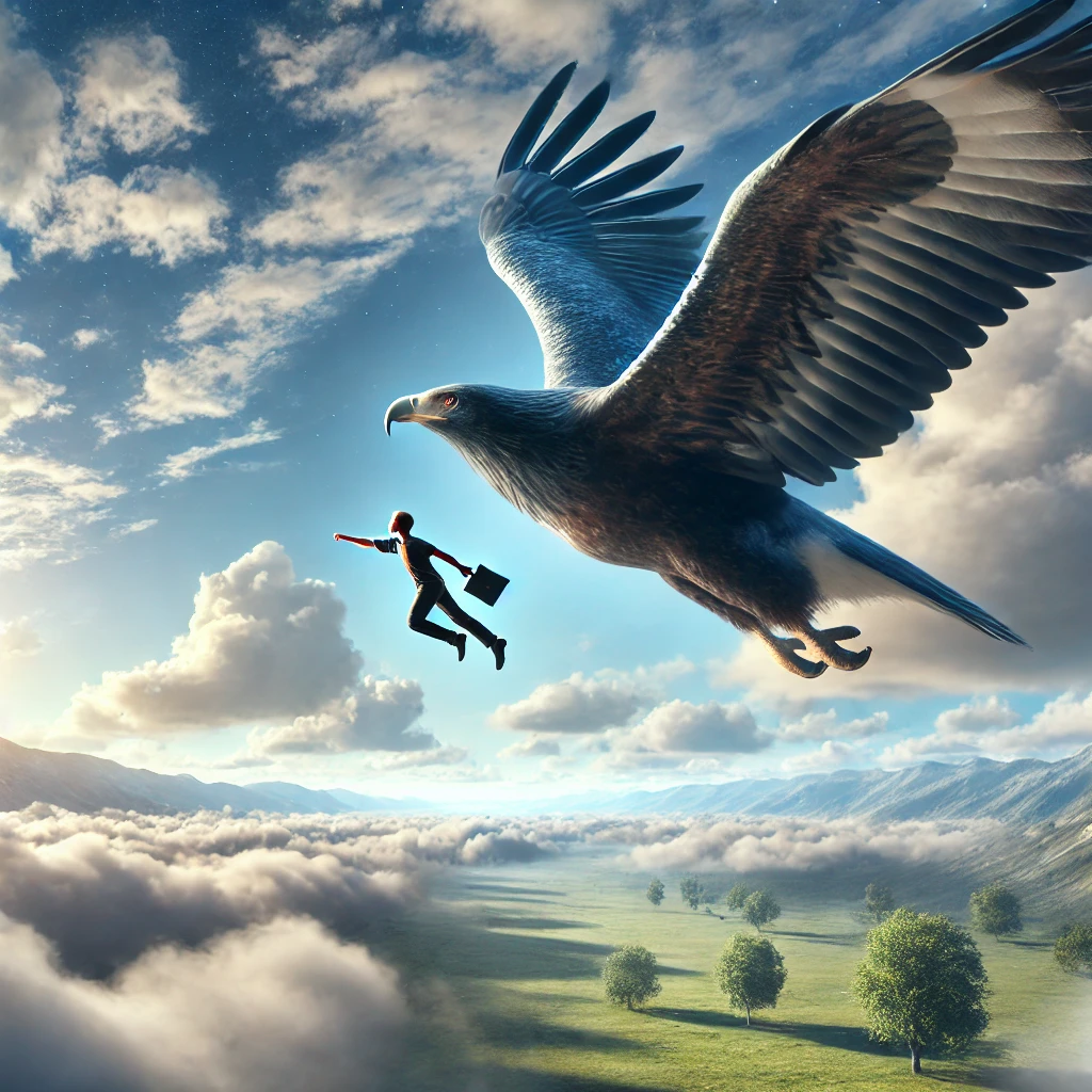 거대한 새와 함께 나는 꿈: 보호와 지지를 상징합니다.