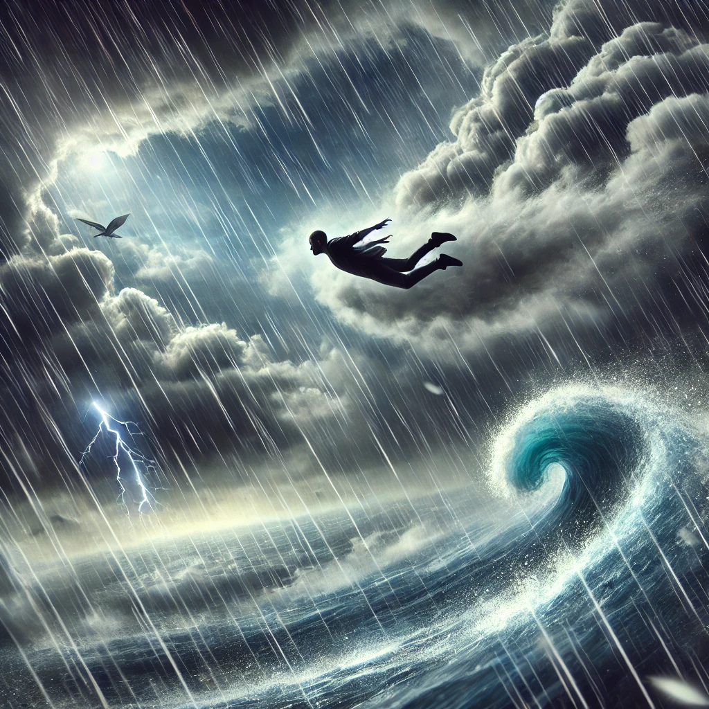 폭풍 속을 나는 꿈: 강한 감정과 변화의 시기를 반영합니다.