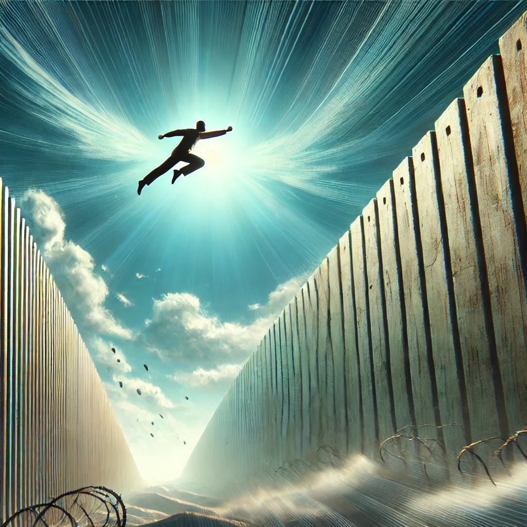 장벽을 넘는 꿈: 한계 극복과 도전을 의미합니다.